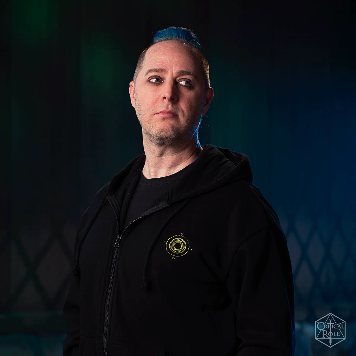 - Taliesin Jaffe is wearing a size XL.