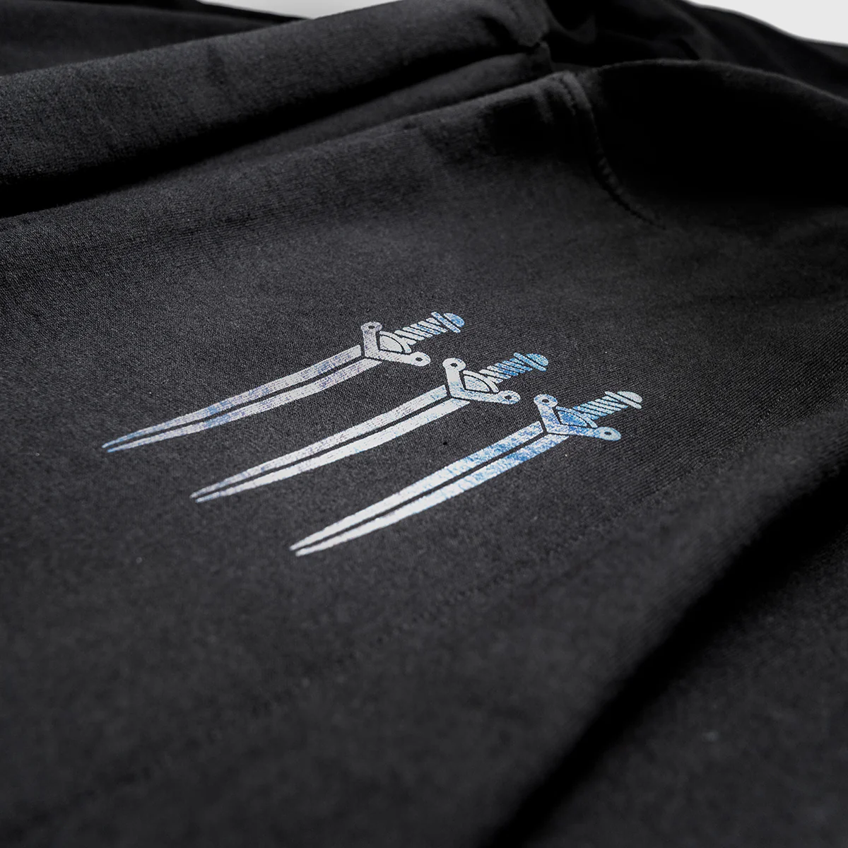 Embrace your inner rogue with this Vax'ildan Hooded Cloak! This cloak is danger on the outside, heart on the inside, just like Vax himself. The back is adorned with iridescent foiled wings fit for a champion. Three daggers defend the wearer's chest, while in the same location on the inside of the cloak, a snowdrop is tucked against the heart. Vax's foreboding line to his sister, "Do not go far from me," runs down the inside of the hemline.